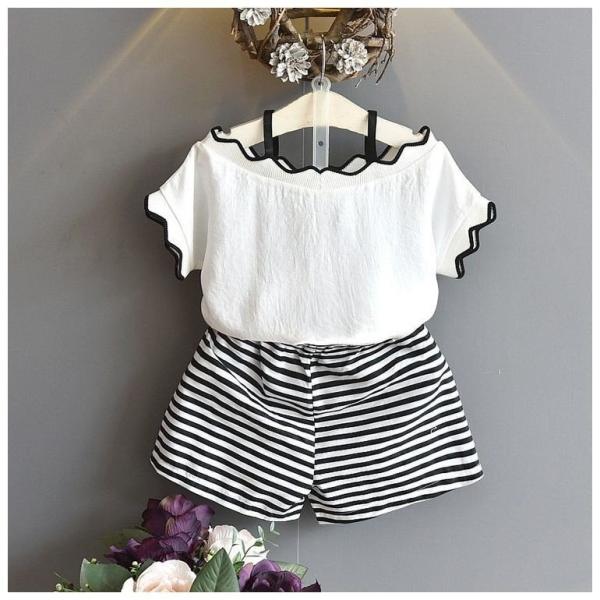 送料無料 期間限定今なら送料無料 セットアップ 半袖 パンツ 短パン ハーフパンツ 子供服 キッズ 可愛い オシャレ 女の子 ストライプ